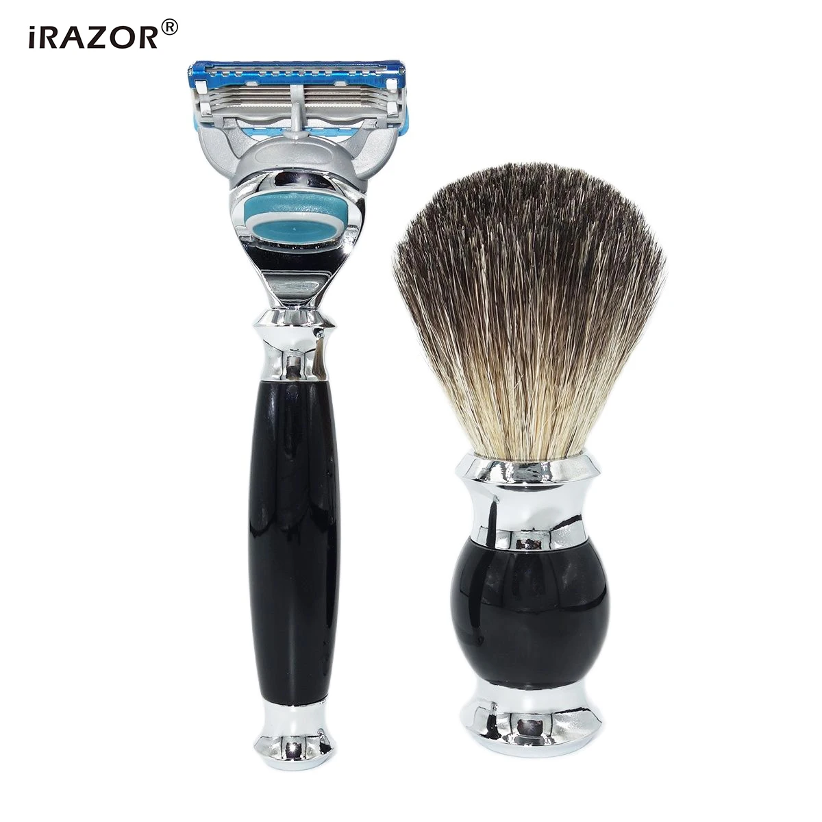 iRAZOR 5 Layer Safety Razor Shaving Kit Badger Hair Cream Brush and Shaver Mug Bowl Stand Holder Birthday Christmas Holiday Gift