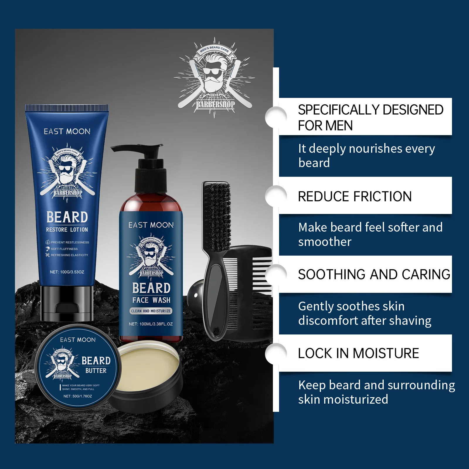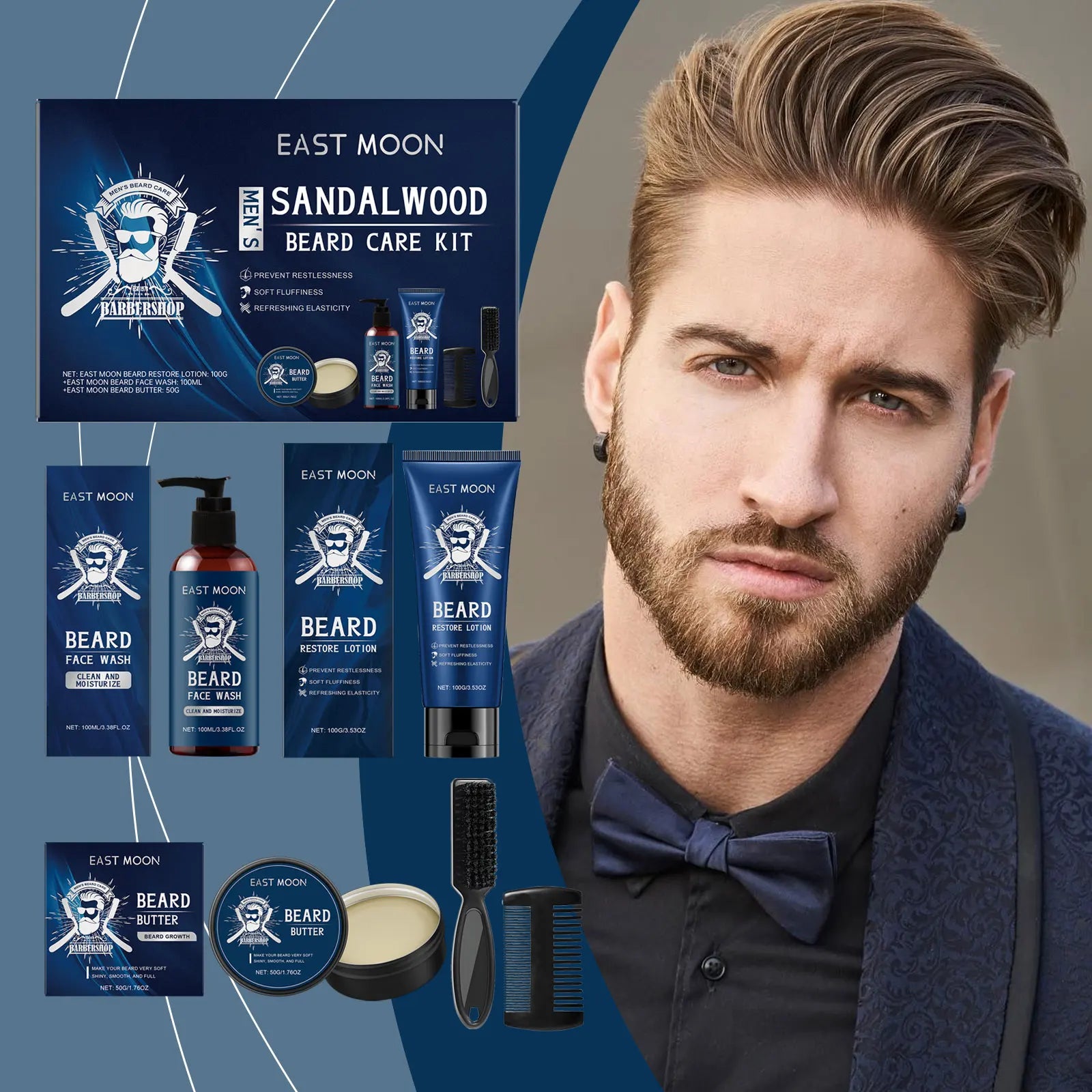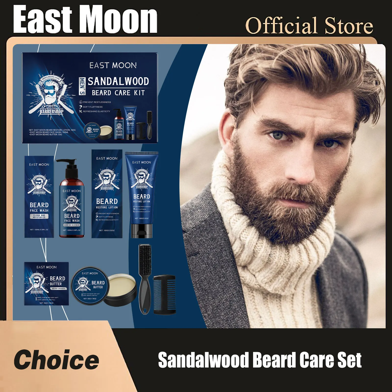 East Moon Men Sandalwood Beard Care Set With Comb Deep Moisturizing Improve Grooming Strengthen Thickener Keep Smoothing Beard Growth Wax 250ml
